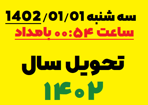 - تاریخ دقیق تحویل سال ۱۴۰۲ هم زمان با روز سه شنبه ۲۱ مارس ۲۰۲۳ میلادی است.